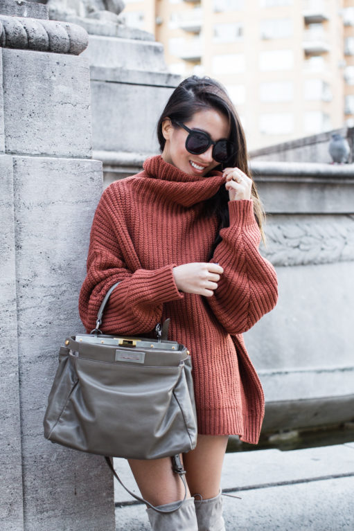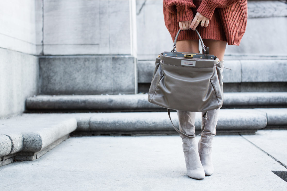 Outfit S W E A T E R – D R E S S :: Free People sweater | Stuart Weitzman boots | Fendi ‘Peekaboo’ bag (pre-loved at a great price!) | Karen Walker sunglasses