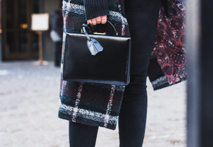 Outfit H E R :: Zara* coat | Halogen* turtleneck | Topshop* jeans | YSL* belt | Mark Cross bag (similar The Daily Edited box bag) | Christian Louboutin boots (similar Steve Madden* boots) | DLNLX* earrings | Brixton* cap