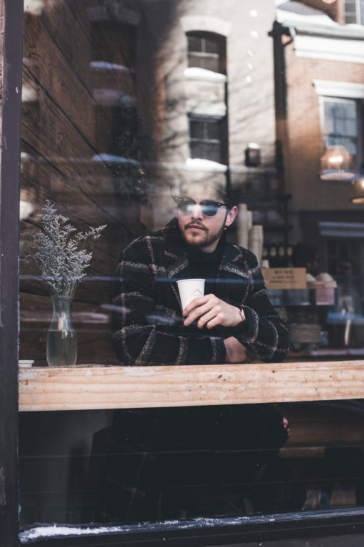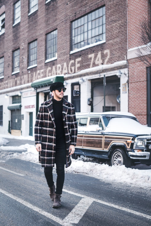 Outfit H I M :: Zara* coat | Calibrate* turtleneck | J Brand jeans | Brixton* cap | Ray-Ban sunglasses
