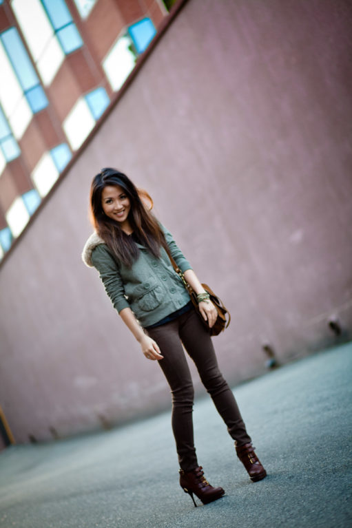 The weather reminds me very much of San Francisco which I love! Sunny yet a little chilly. When the temperature drops, I practically wear hoodies on a daily basis. Faux fur hoodies, hoodie under a leather jacket, hoodie under a blazer, and hoodie under another hoodie! This particular hoodie is one of my favorites. I love the details – the faux fur, the bib design, the oversized buttons, and the feminine pockets.