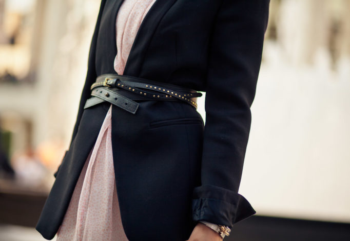 I wore my favorite light pink dress with a sleek black blazer that I recently got from Zara. Since it’s an unbutton blazer, I added some definition by cinching the waist with two different belts.