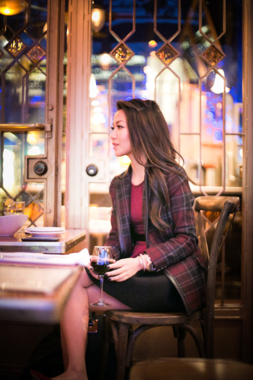 For our dinner date, I wanted to restyle the plaid print with a peplum top and flare skirt. And since it’s December, a holiday palette is very appropriate =) One of our favorite places to dine in LA is The Little Next Door. If you haven’t been, we highly recommend it! We love sitting in the patio area with a glass of wine, our favorite dishes, and coffee afterwards. It’s quiet and charming… a great date night spot!