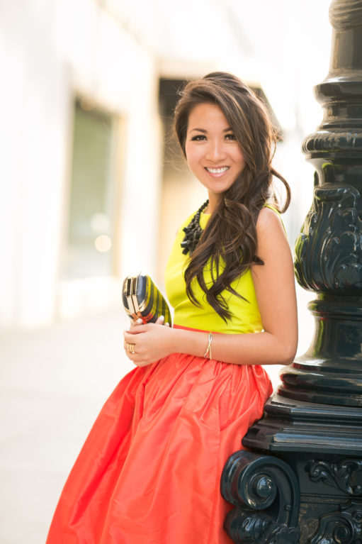 Perfect for juicing and wearing of course, I paired neon lemon and bright orange today. With two vibrant colors, I wanted to anchor the look with a black jacket and statement necklace. Going back to juicing… add pineapples, apples, and a few mint leaves and it’s the most delicious blend!