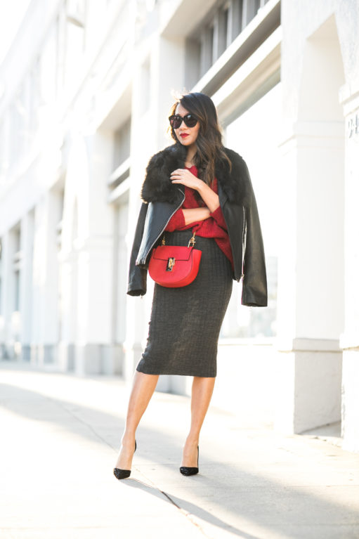 Before sharing the news, lets take a quick moment and talk about warm holiday pieces. I’m obsessed with this knit skirt (under $15!). From morning lattes to late night coffee runs, I’ve been wearing this skirt (also adore this ribbed skirt) non-stop. Styled two ways below =) I love the knit material and longer silhouette. I’ve paired it with tall boots and ankle booties, and appreciate how versatile it is.