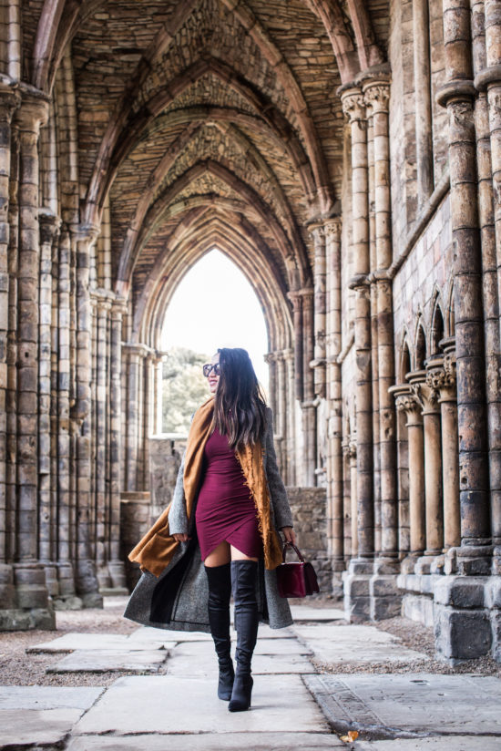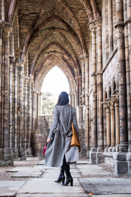 The weather in Edinburgh is much colder than NYC. For this trip, I knew coats, scarves, and boots were mandatory. When it comes to boots, I love packing over-the-knee boots. They’re actually very compact (I roll the top down and tuck it in), especially these Dolce Vita over-the-knee boots! Also with high boots, I tend to wear thigh high wool socks underneath so it feels like I’m wearing two layers of pants! It provides a seamless look and extra warmth. Believe it or not, I wore these boots three days in a row! They’re super comfortable and great for daytime and evening. These boots are set on a comfortable block heel with a sleek point-toe silhouette that creates the illusion of a longer frame. I also love these short boots and tall flat boots for travel, and of course, for fall!