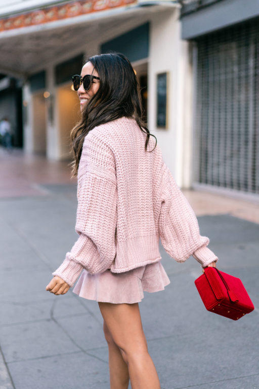 Even though we’re in LA, some days are actually quite cool here. And these days are great for comfy oversized sweaters. I bought this powder pink H&M sweater a week ago and love the drop shoulders and balloon sleeves. It’s super soft, perfectly oversized, and under $25!